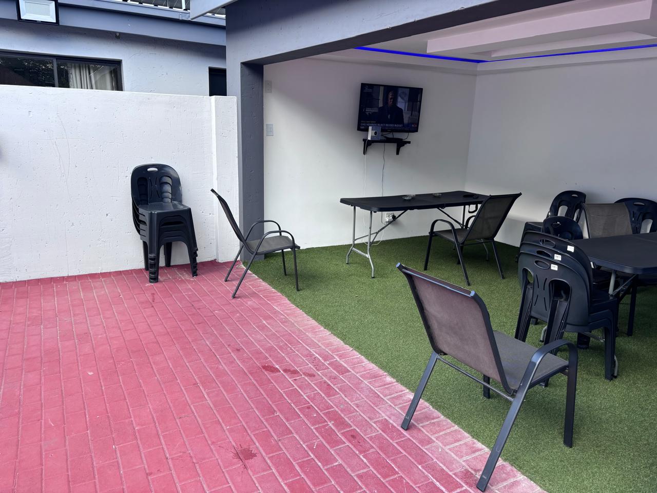 relaxing space designed for your comfort. Unwind in the fresh air, socialize with friends, or simply enjoy a peaceful moment. This area is perfect for guests who wish to smoke or enjoy outdoor leisure in a comfortable setting.